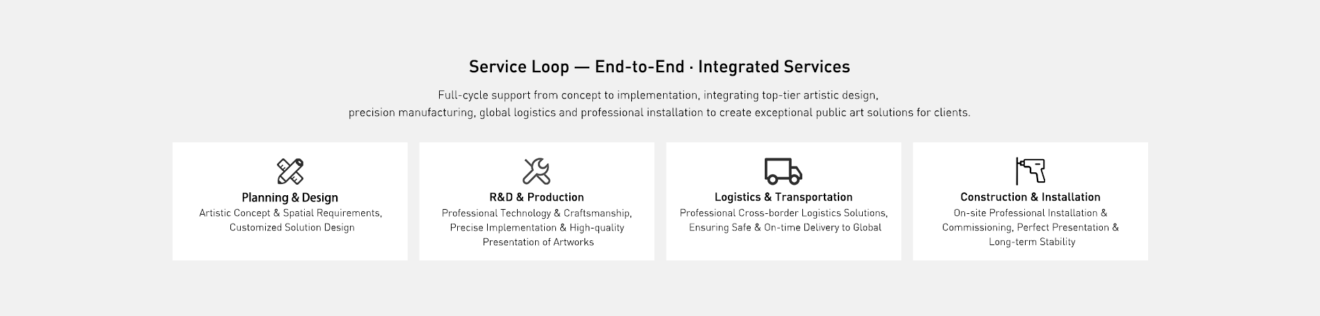 In the past 24 years, we have taken over hundreds project in all over the world. Such as the sculptures of Beijing Olympic Game in 2008, Shanghai Disneyland, Beijing universal studios, etc. We have professional sculpture design, fabricate,engineering support, installation, sales and customer service. The wealth of experiences can help us undertake different size or level of projects in all over the world.